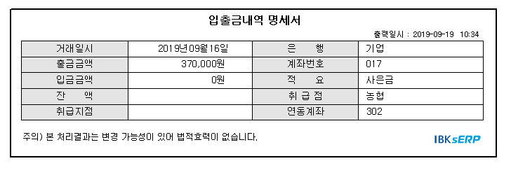 가입당시 알려주셨던 농협은행 계좌로 잘 입금된 것으로 확인되었습니다^^