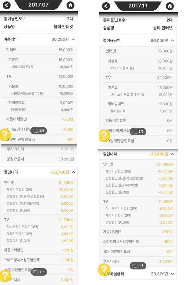 월 이용료를 보시면 7월과 11월 3만원 초반대로 동일하지 않습니까~ :)