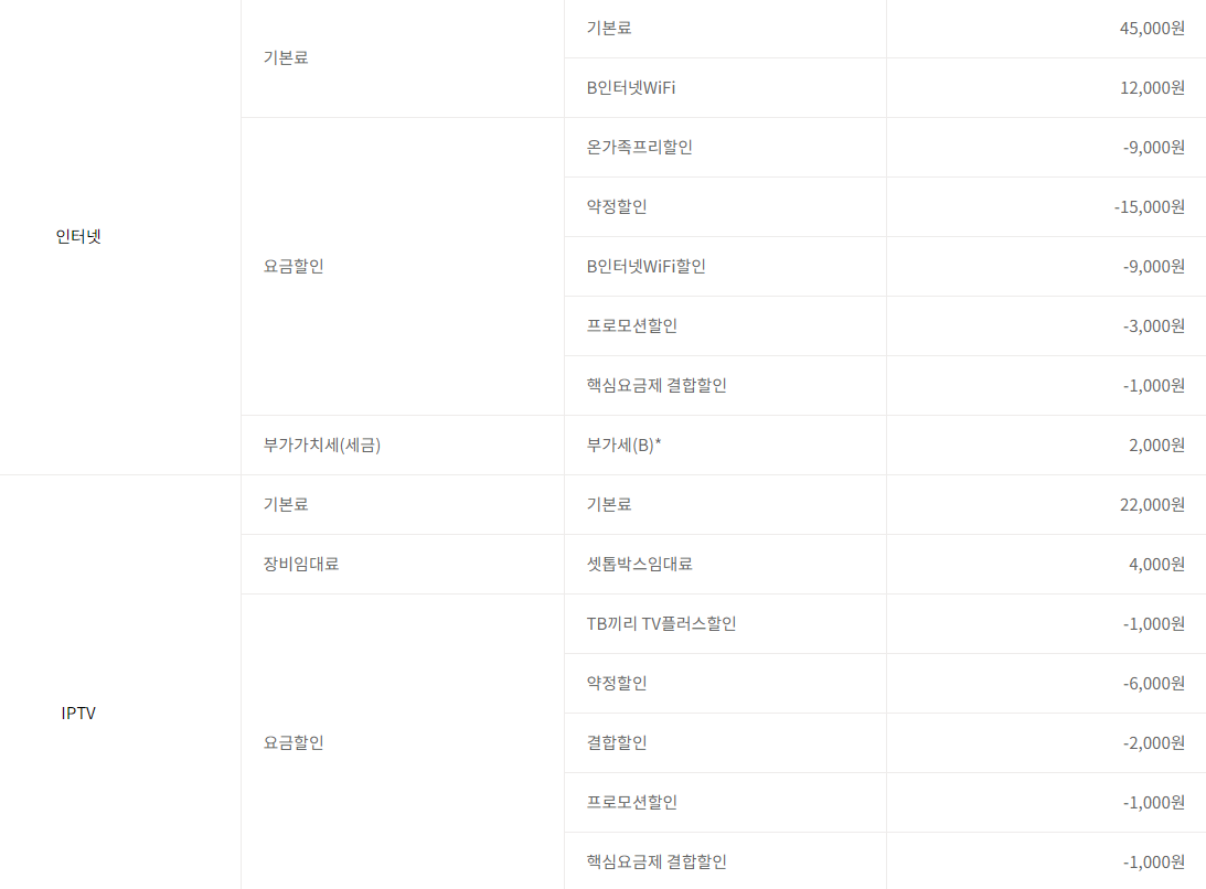 현재 SKB 기가라이트 + 온가족프리(SKT 2명) 요금제를 쓰고 있습니다.