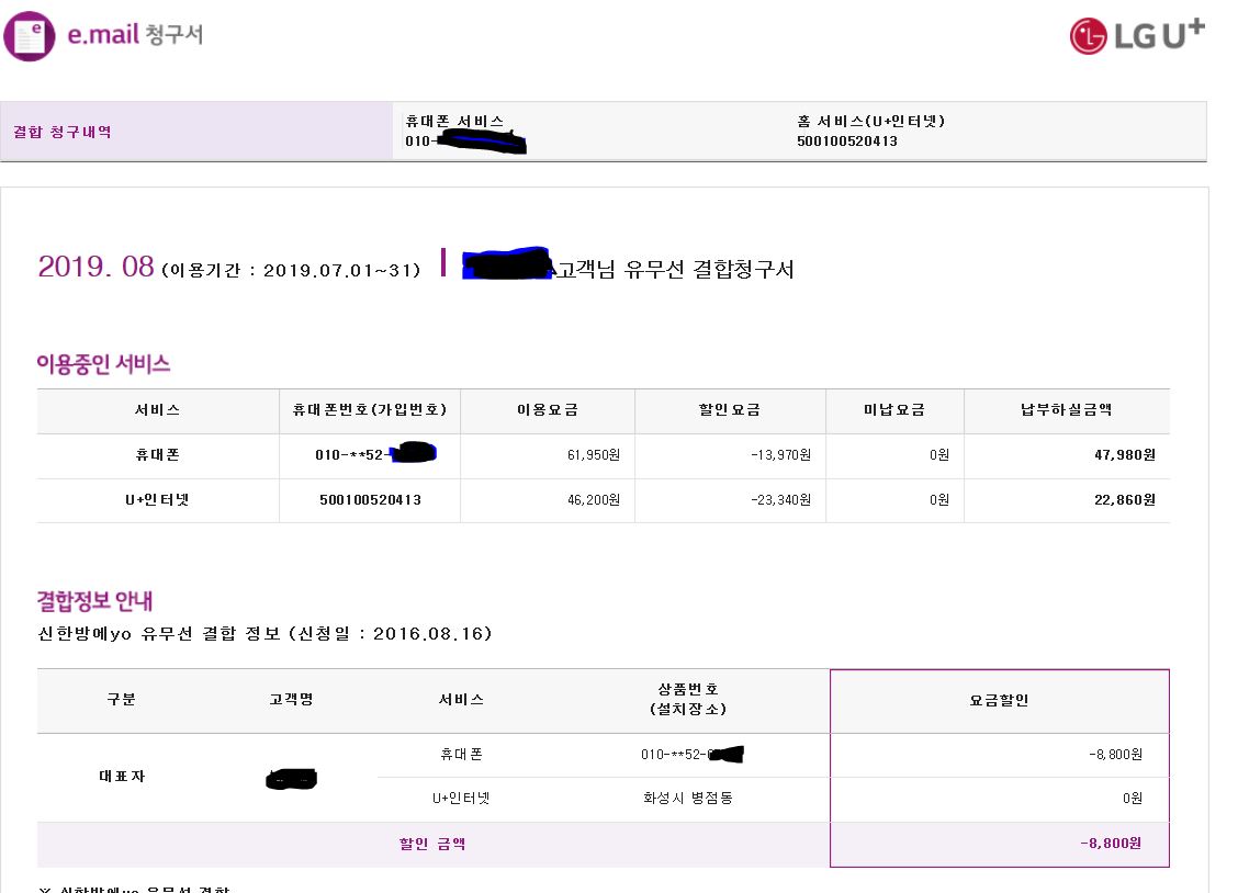 핸드폰 요금에서 8,800원 할인을 받고 계시다면