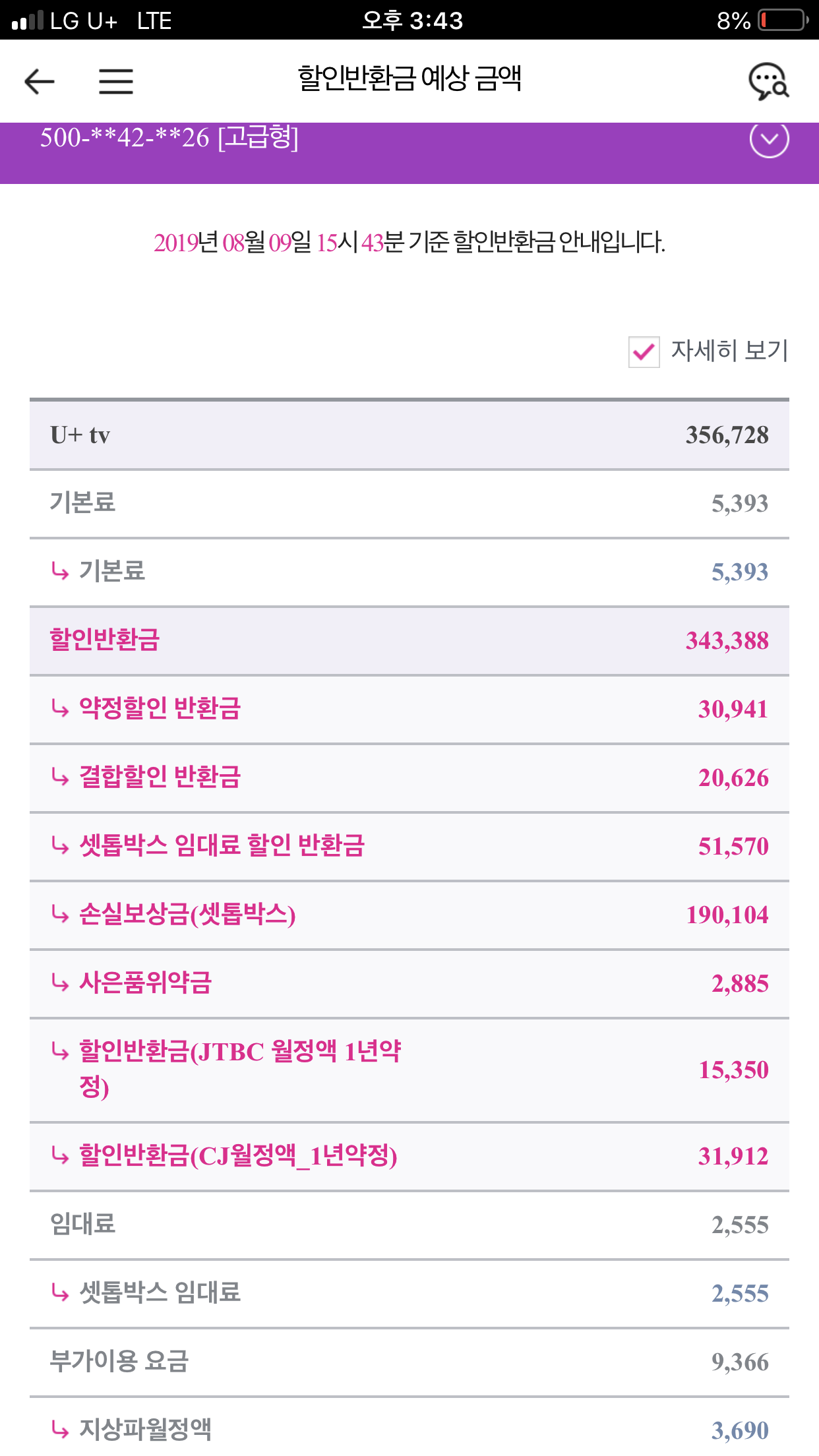 댓글로 조회햇을때 위약금 내역 남길게요!!