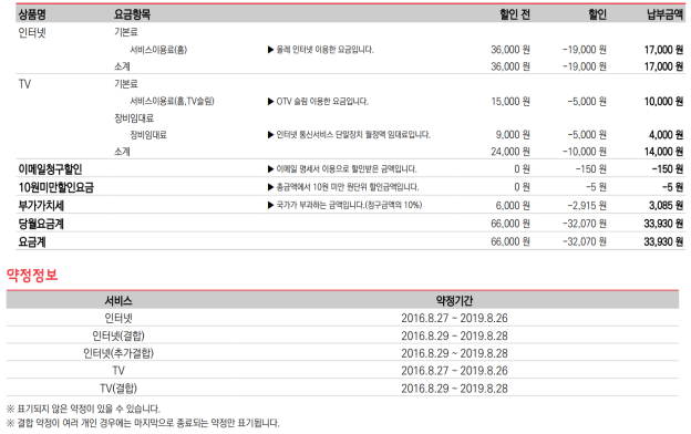 이렇게 진행되고 있으며, 모두 3년 약정이고요!^~^*