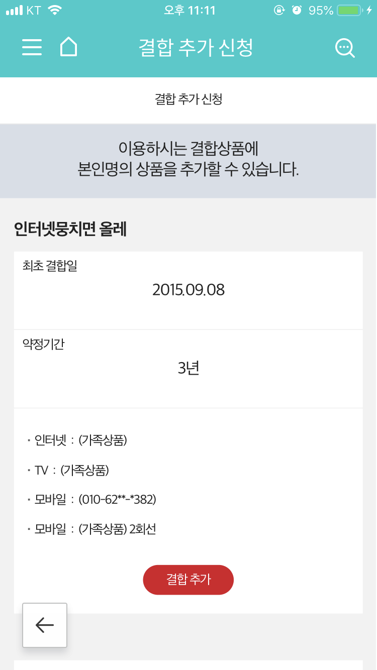 친언니가 인터넷이랑 티비 모바일을 케이티 사용해서 제 모바일도 인터넷뭉치면올레 가족결합으로 묶여있는상태에요