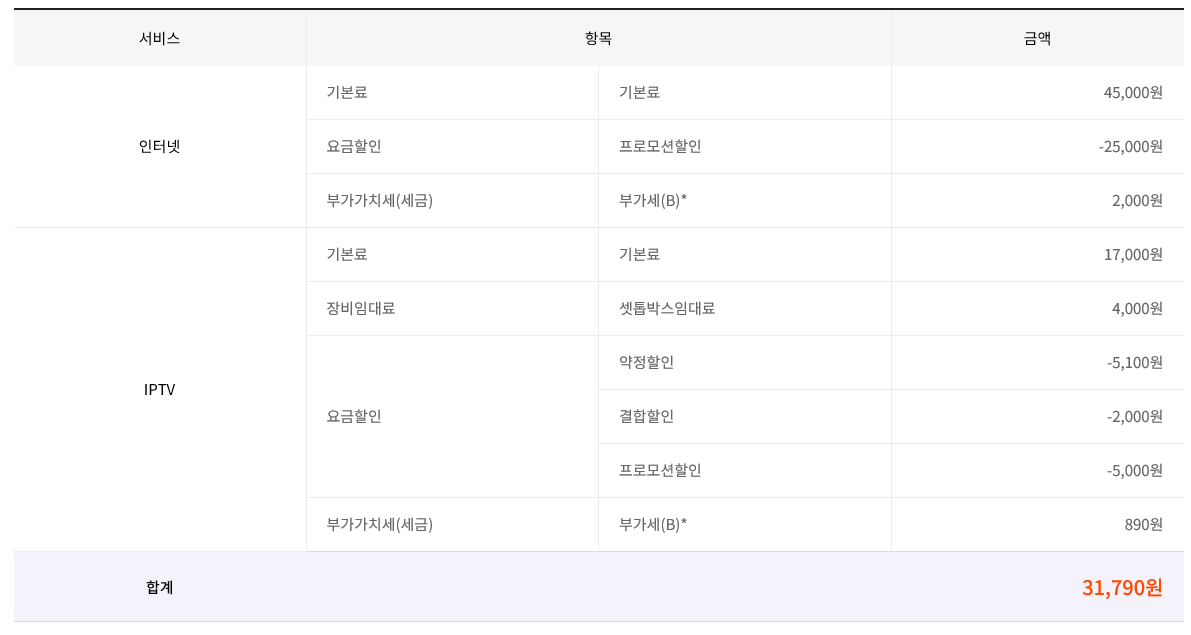 기사님 출동비: 38,500원(인터넷 25,300원 + TV 13,200원)
