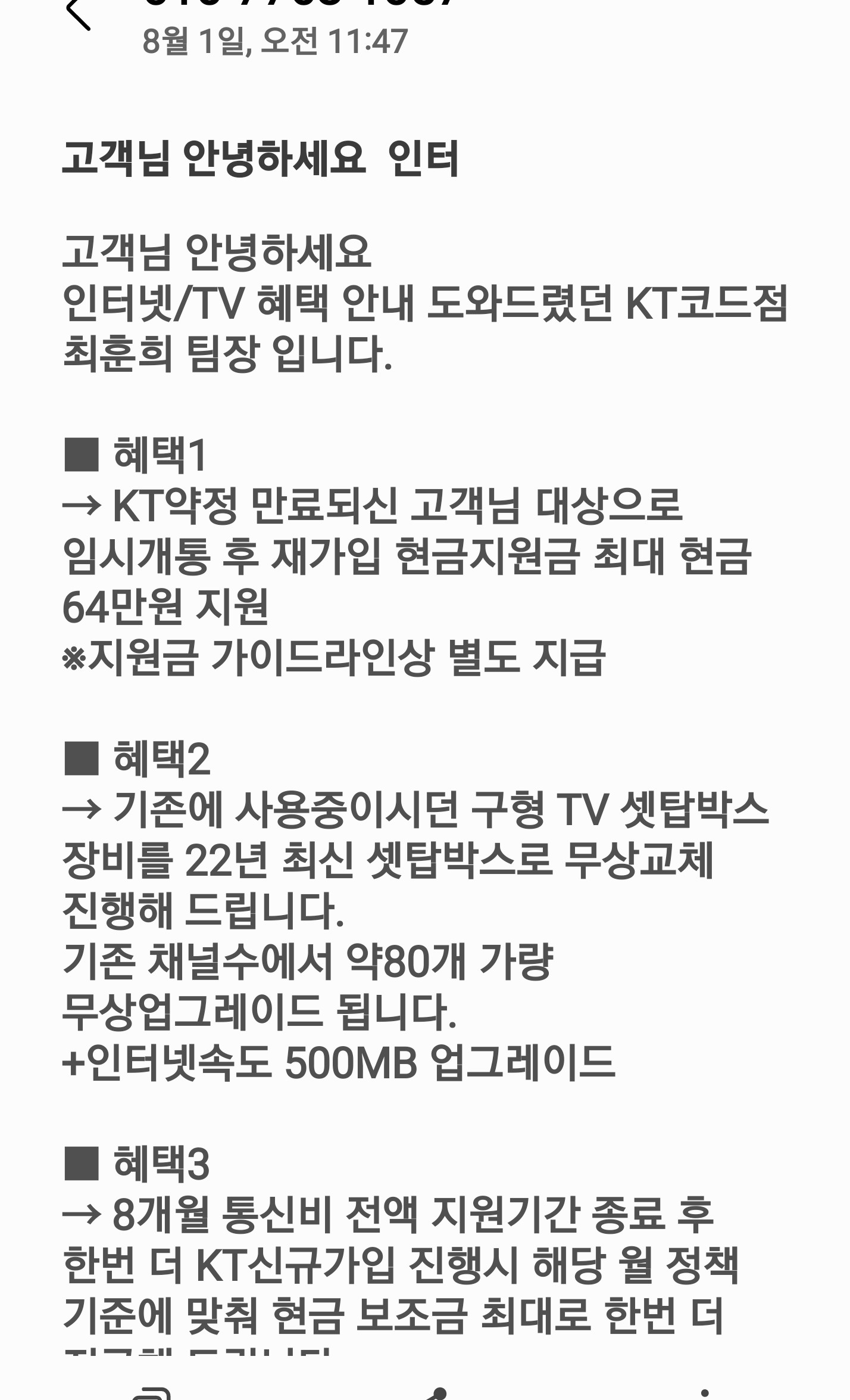 8월, SK인터넷 약정만료 후 꼭 다시 한번 오셔서