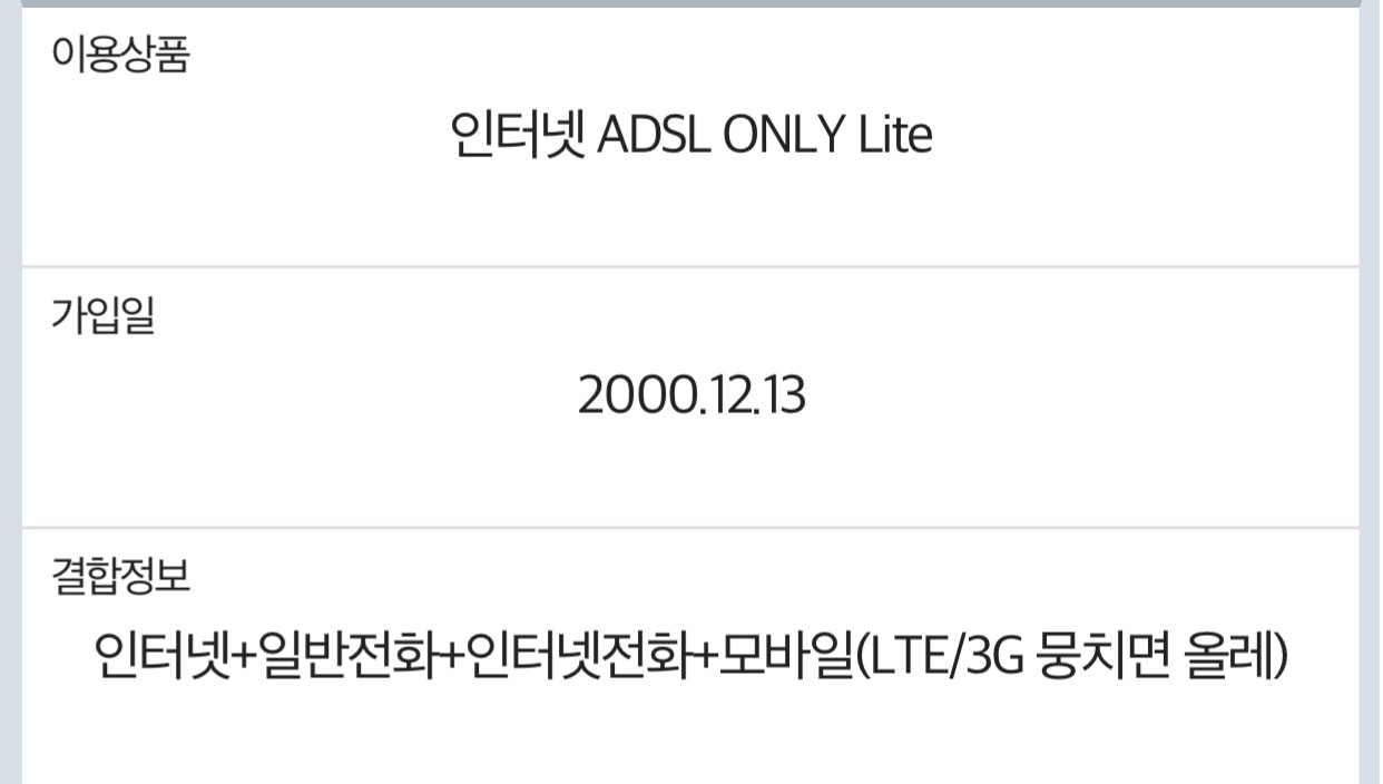 현재 전화+인터넷(100메가) 20년 정도 쓰고 있으며