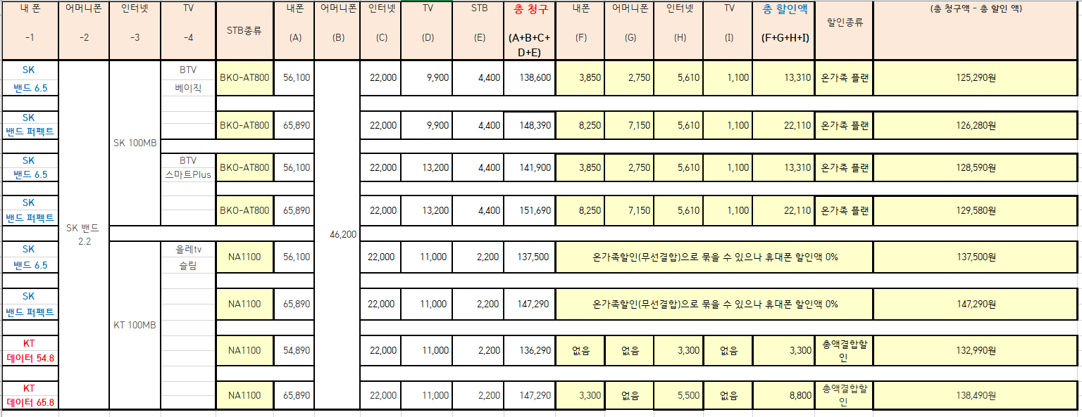 (물론 가격은 SK폰 2회선결합+SKTV가 가장 저렴하겠지만...