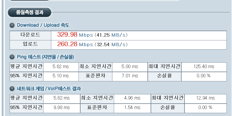만에 하나 속도측정을 하실 때 토렌트를 켜두거나 게임 다운로드 등다른 작업을 하면