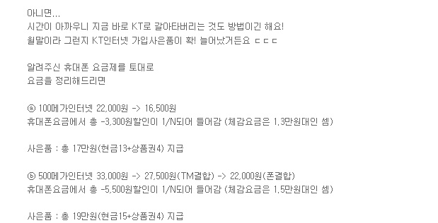 # 500메가인터넷 33,000원 -> 폰 결합시 27,500원(tv or mobile결합)