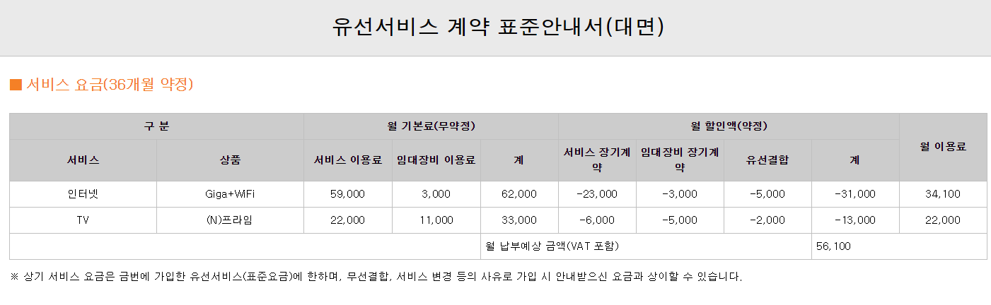 입주하면서 신청했던 타사(kt)의 기존 인터넷과 TV 상품이 계약 만료가 되는 상황이고,