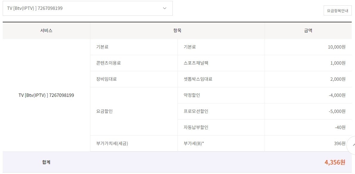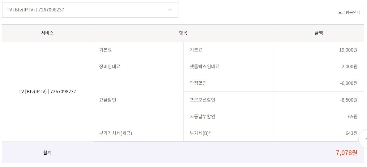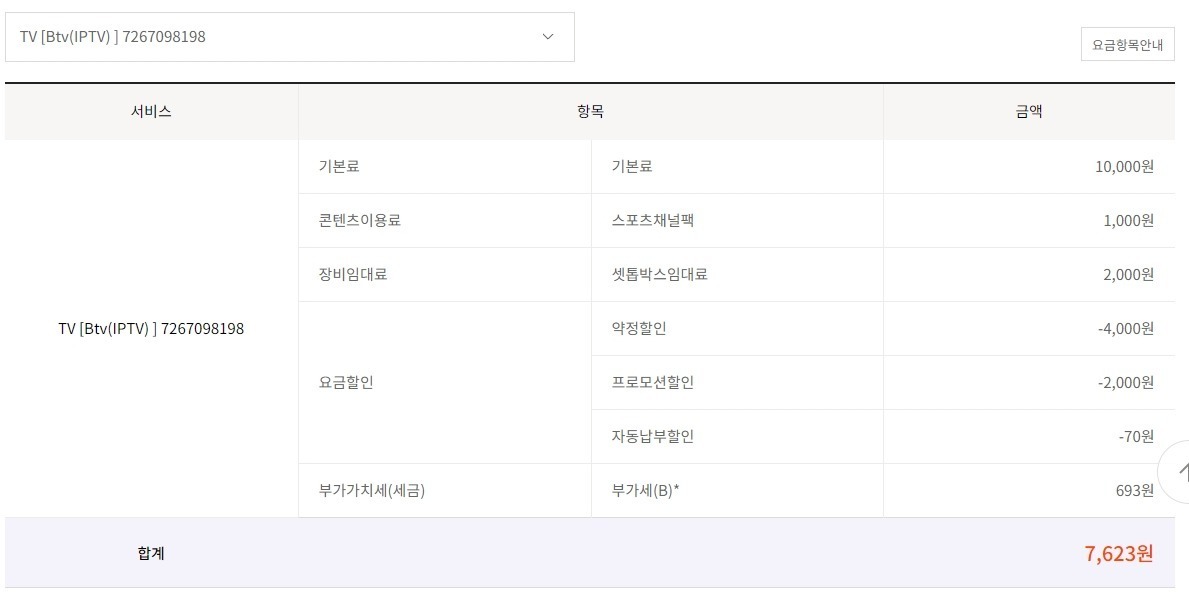TV 한대(7267098199) 는 무조건 해지해야 합니다.(작년 아버지가 돌아가셔서 식구가 두명이 되었습니다)