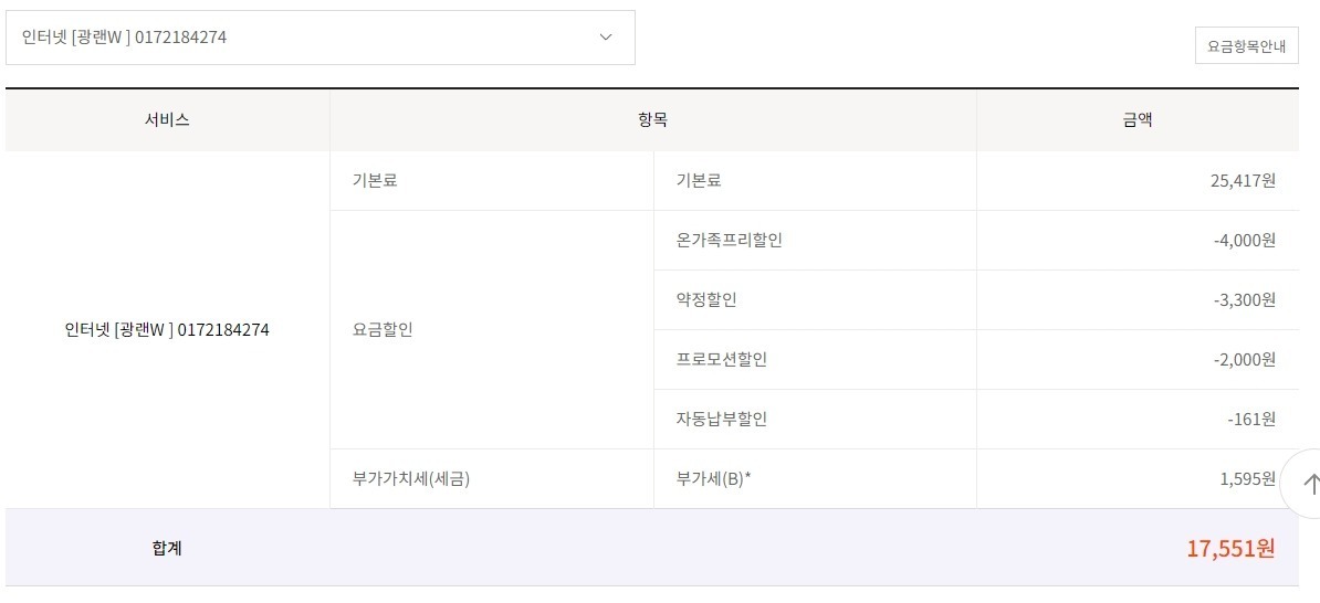 현재 SK핸드폰 2회선을 결합해 온가족프리를 적용해 두셨는데