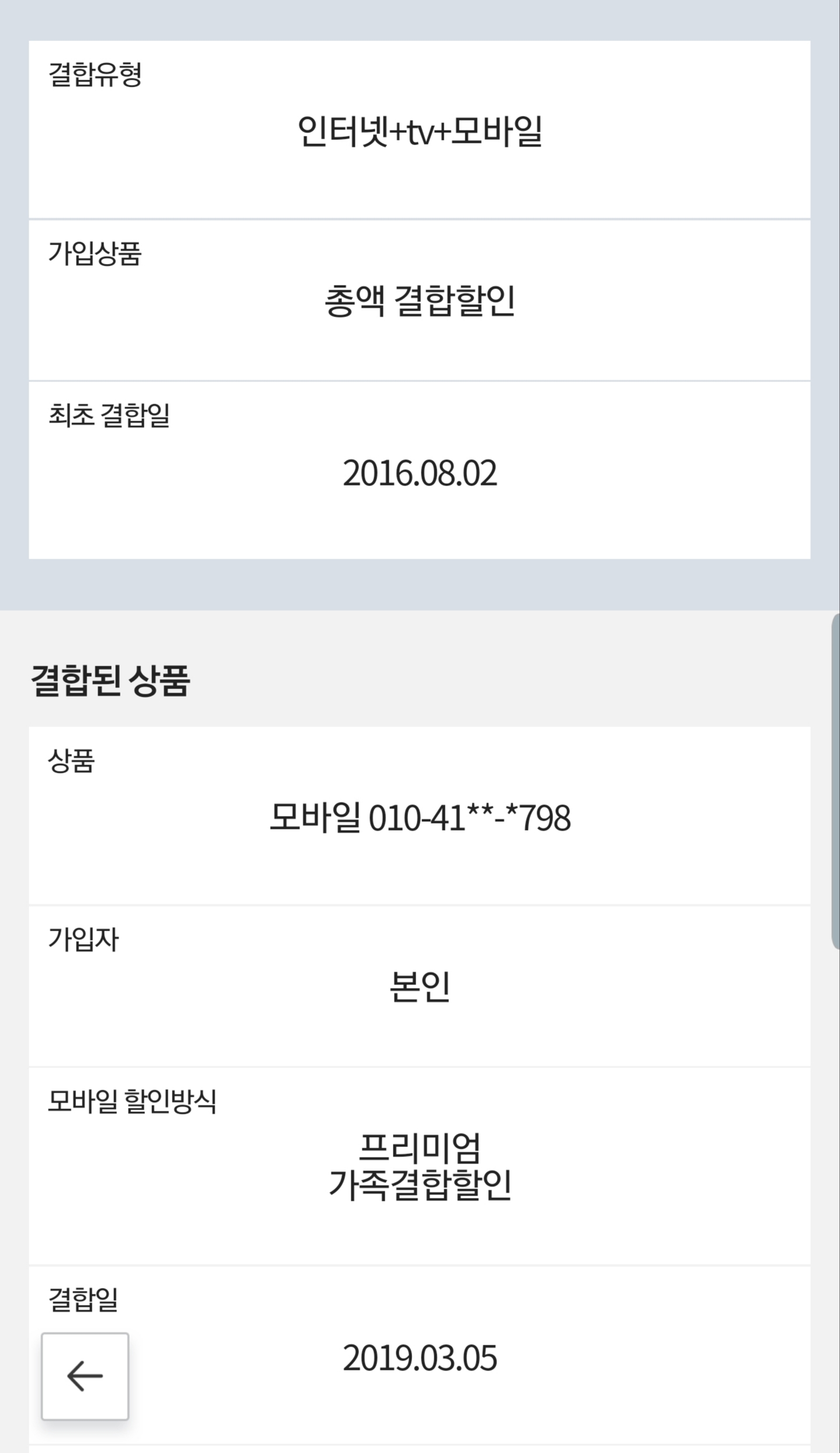 이미 인터넷과 결합해 두셨다면 "총액결합할인 + 프리미엄 가족결합"을 적용해 두셨는지요?