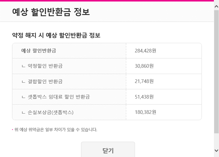위약금이 꽤 커서(총 45만원 이상) 일단은 정확한 위약금 확인과 함께