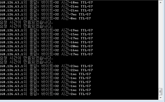 제가 kt라 핑테스트를 168.126.63.1 로 진행했구요