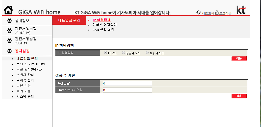 3. 라우터(공유기)의 KT모드와 인증수제한은