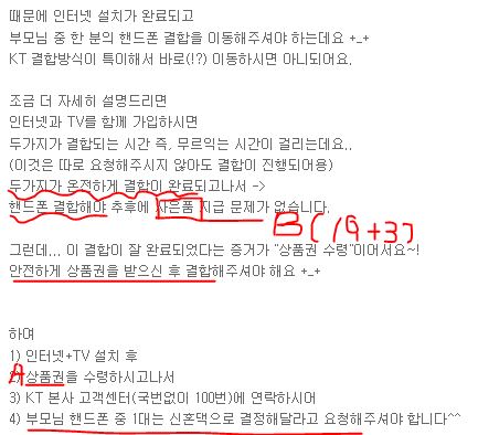 본인 혹은 직계가족의 KT인터넷 모(母)회선이 있는 경우에 ->