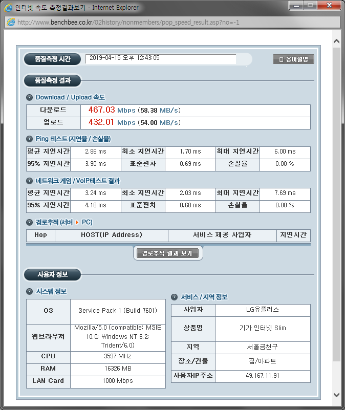 * 벤치비 속도측정 사이트 : http://www.benchbee.co.kr