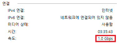 2) 네트워크 어댑터가 최대 지원할 수 있는 것이 1기가급이라