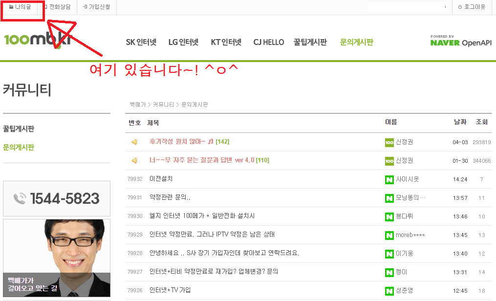 [나의글] 이라는 메뉴가 보이실 거에요 ^^