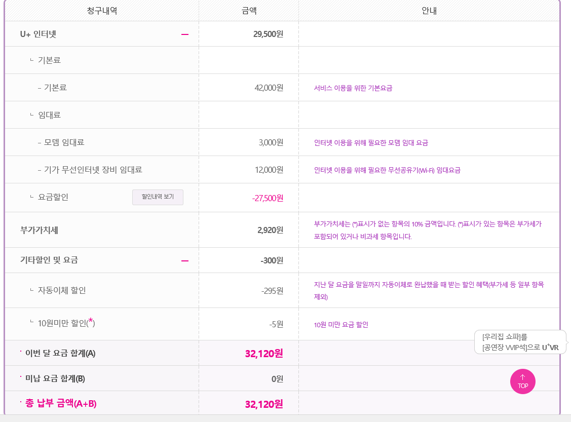 핸드폰도 lg를 이용하고 있는데 결합으로는 사용하지 않고 있습니다.