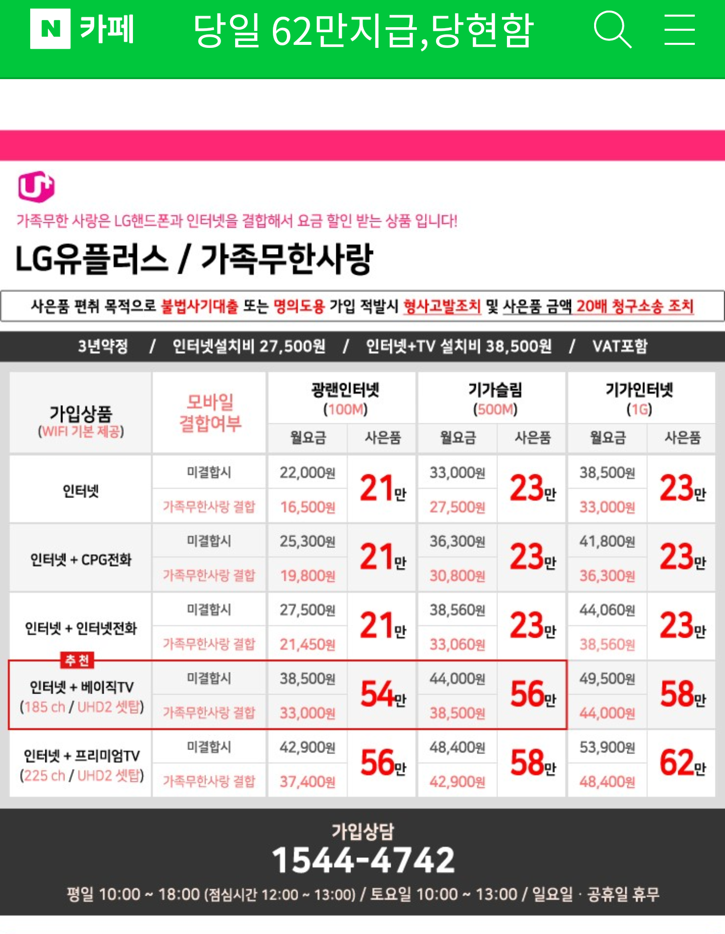 1. LG핸드폰 결합상품 "가족무한사랑"