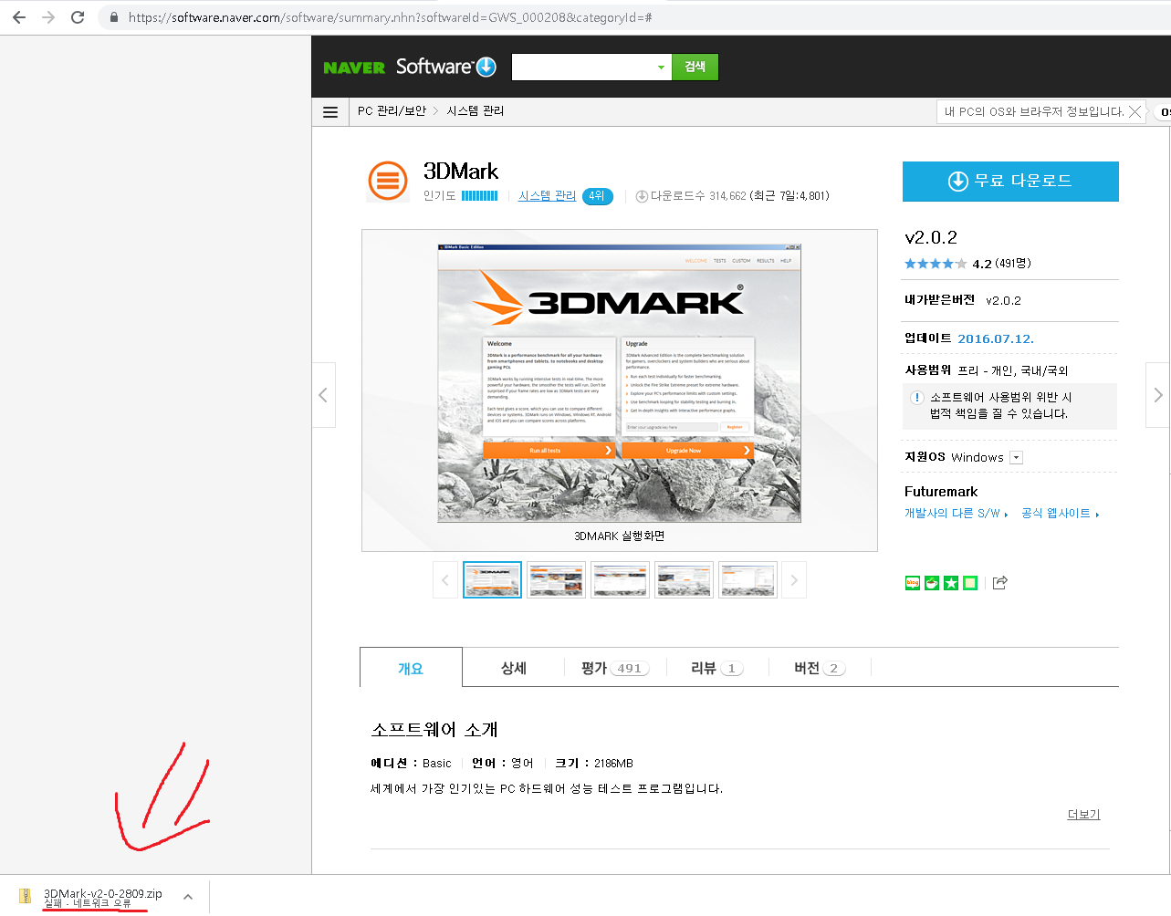 3) 한번 오프라인 상태에서 3D Mark를 돌려보시겠어요~?