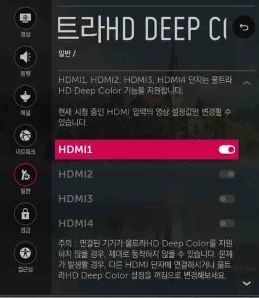 hdmi 울트라 deep color 요거 끄고 티비껏다켜고 켜고 티비껏다켜고 해도 똑같아요