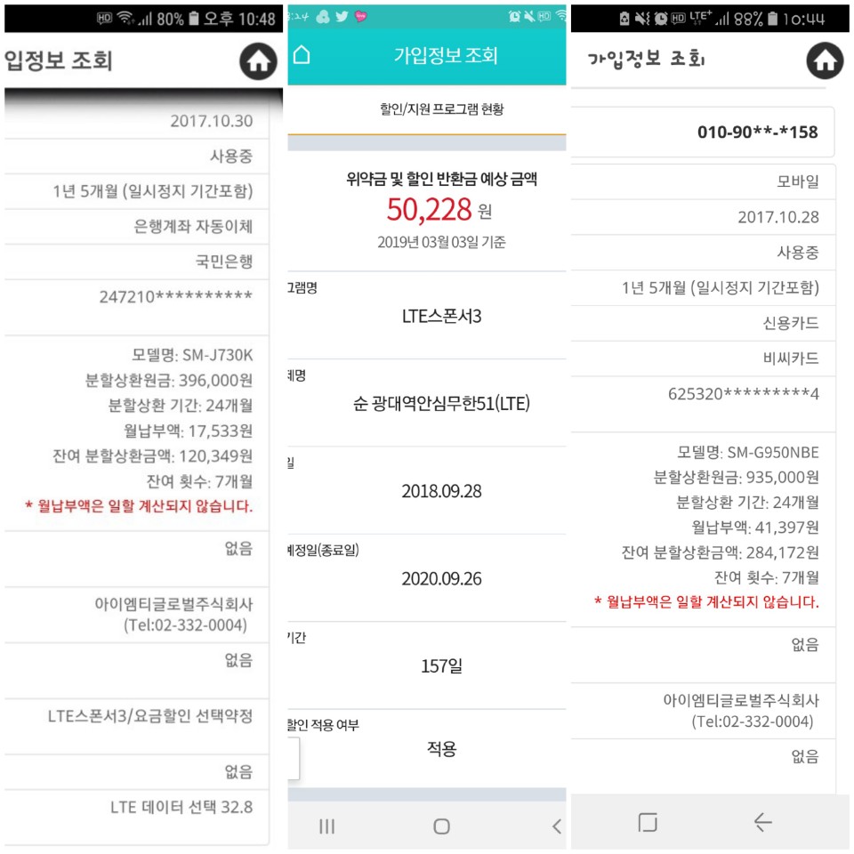 *26일(화)010-7**4-9**0 : kt유지시 - 30만원 현금, 사용료할인