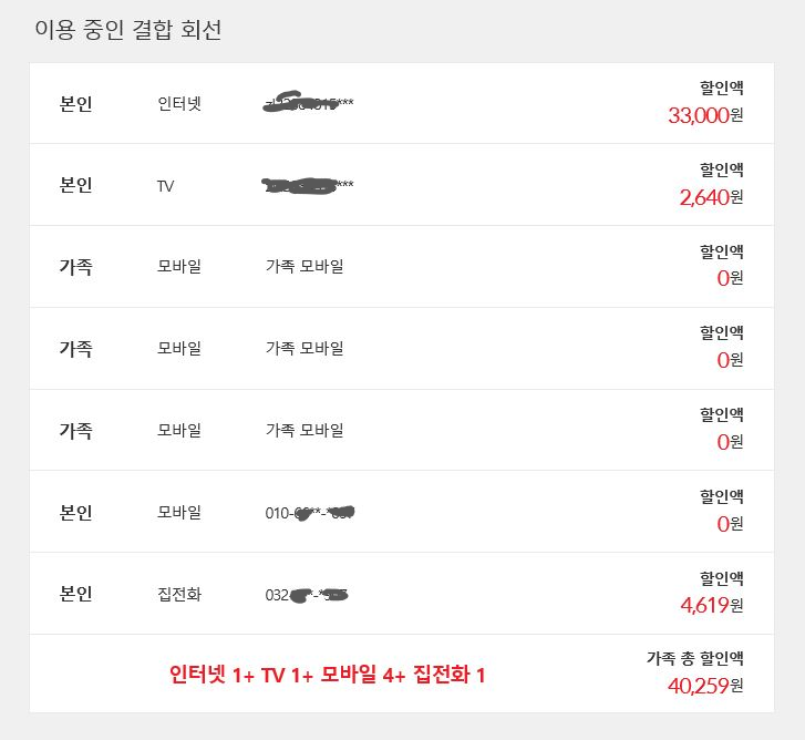 모바일은 부모님과 저, 동생 이렇게 4회선이구요, 동생만 작년 7월에 폰을 바꾸어 아직 약정이 남아 있습니다.