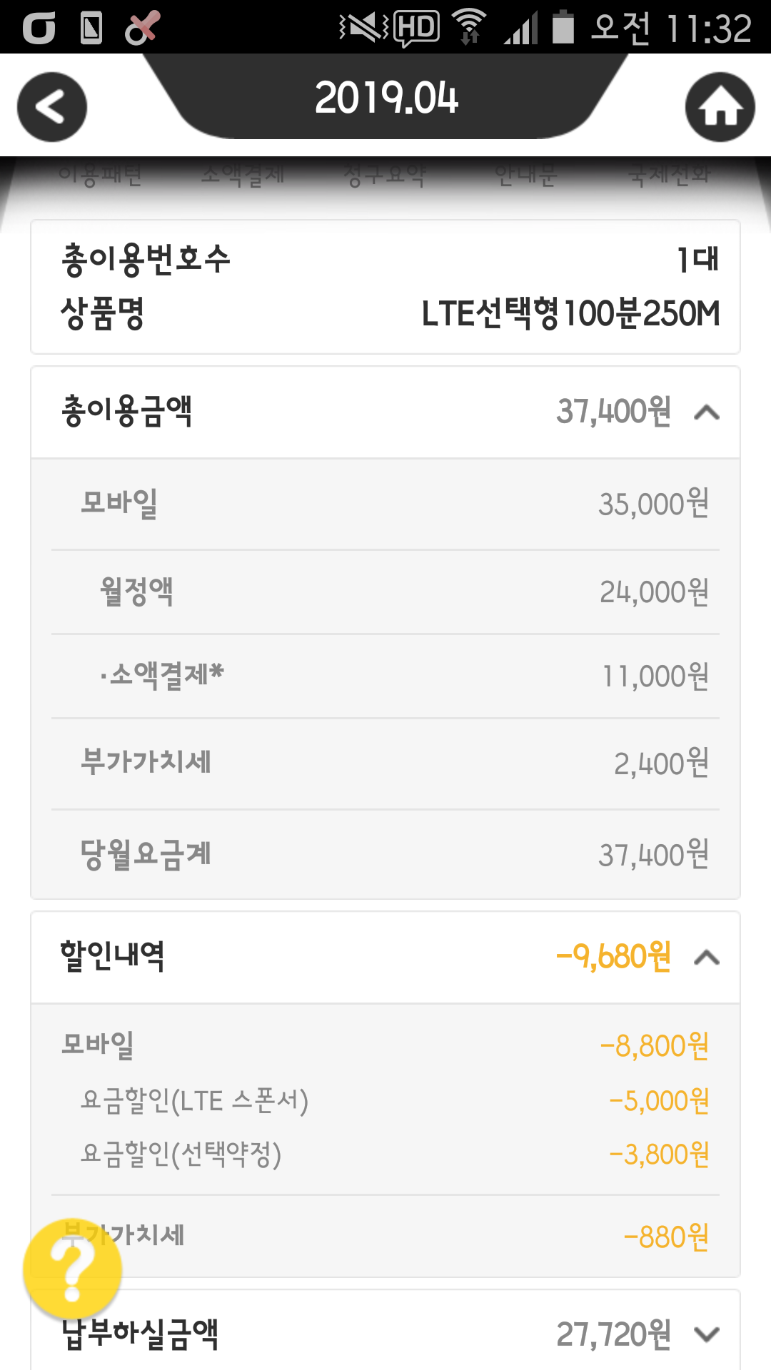 요금제는 사진첨부했어요 장기사용약정이 lte스폰서 같아요
