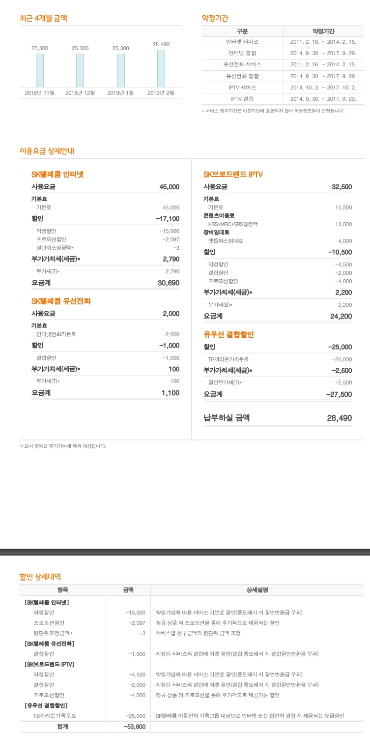 부모님댁에 제 명의로 SK인터넷을 사용하고 있습니다 (SK 휴대폰 총 3회선)