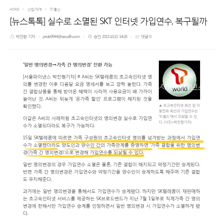 (114랑 106 왔다갔다 거리는것도 너무 불편하고... 기사내용이 SKT로 가입한 고객들만 적용된다니요 ㅜㅜㅜ)