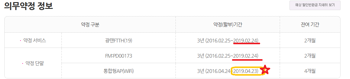 4월쯤 공유기가 설치되면서 약정기간이 3년으로 잡힌 것이죠.
