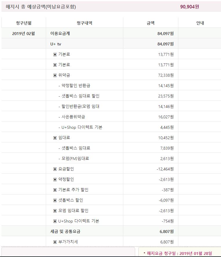 그러고 유플러스 위약금 문의를 했는데요. 장비 임대료에 대한 위약금도 청구를 했는데 정상인가요?