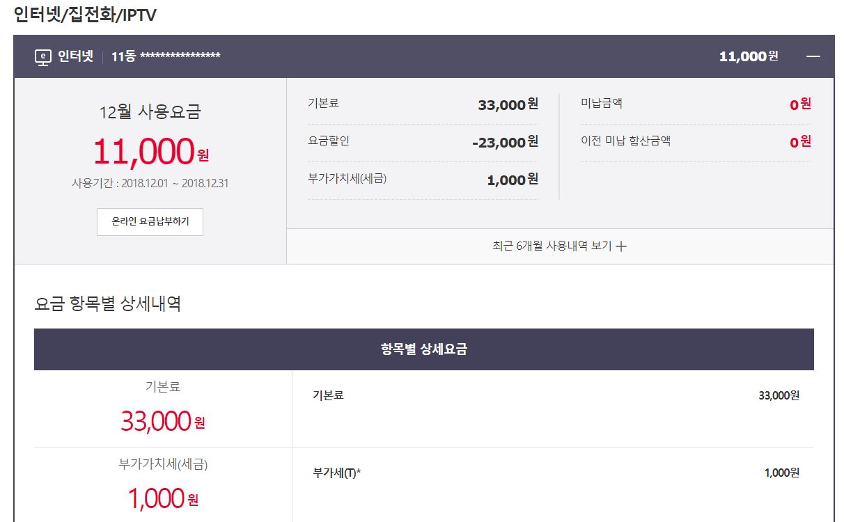 (인터넷 19,800원 + TV 15,400원)이 합산 청구됩니다ㅎㅎ