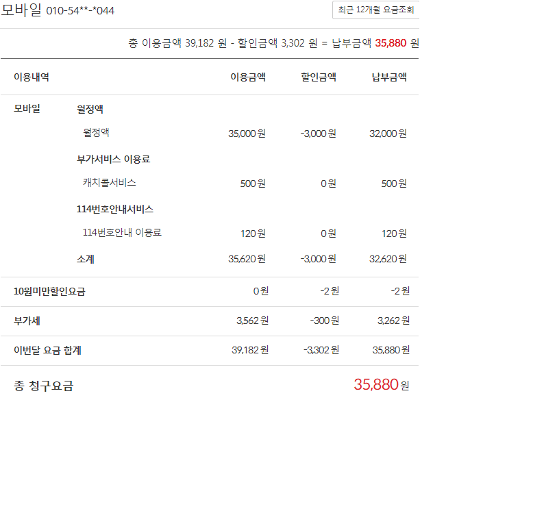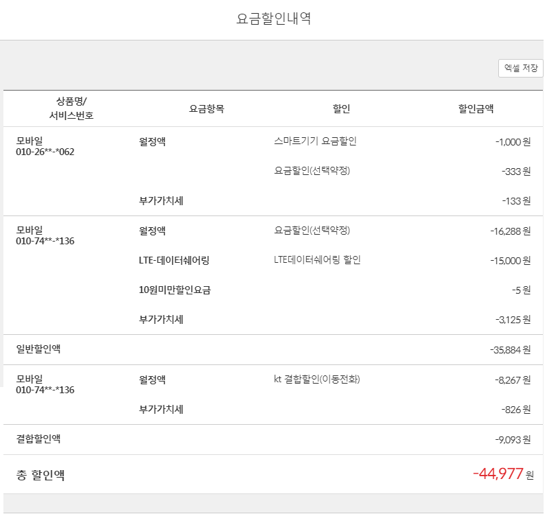 (핸드폰 요금 할인은 각 요금제가 "총액에서" 기여한 만큼 할인혜택이 적용됩니다.)