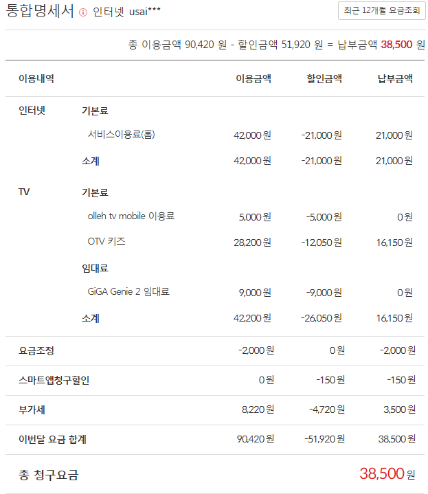 인터넷만 가입하시면 16,500원만 청구되겠죠~?!ㅎㅎ