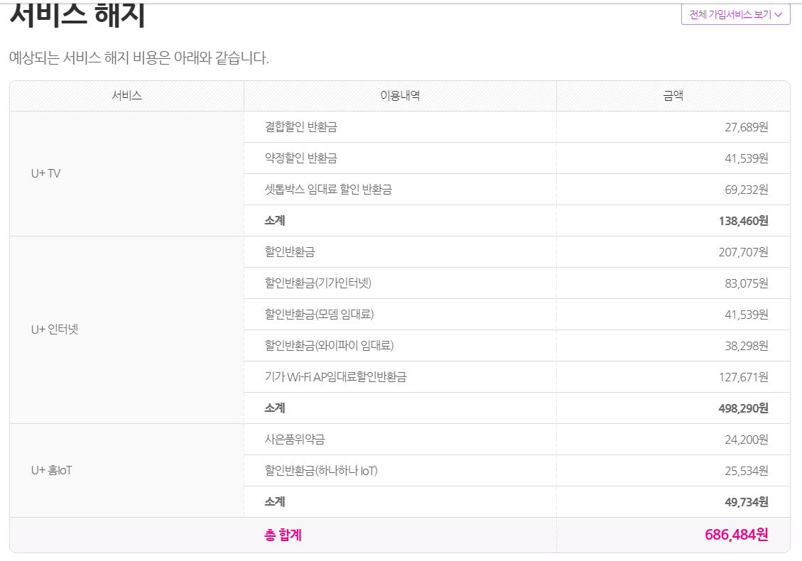 - 사진과 같이 68만원정도의 위약금이 제가 가입한 내역에 맞는건지 궁금합니다.