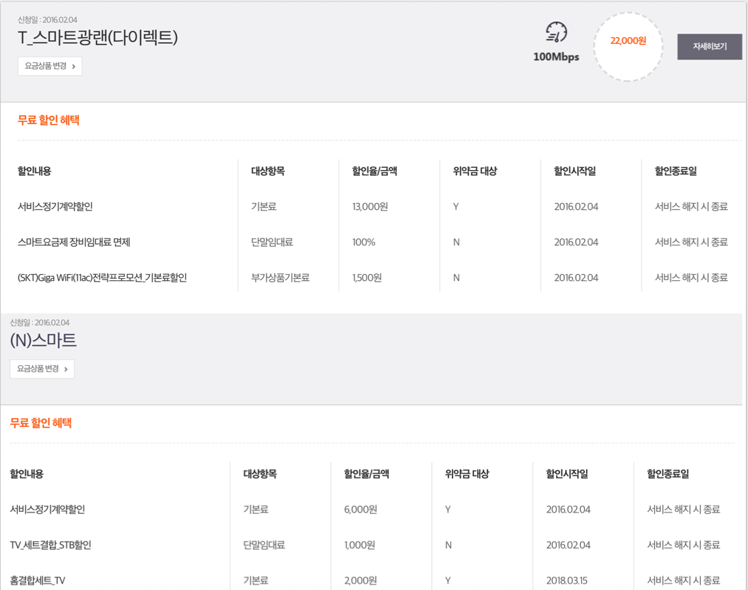 skt 2회선(본인+아내) + 인터넷 + IPTV 결합 이용 중입니다.