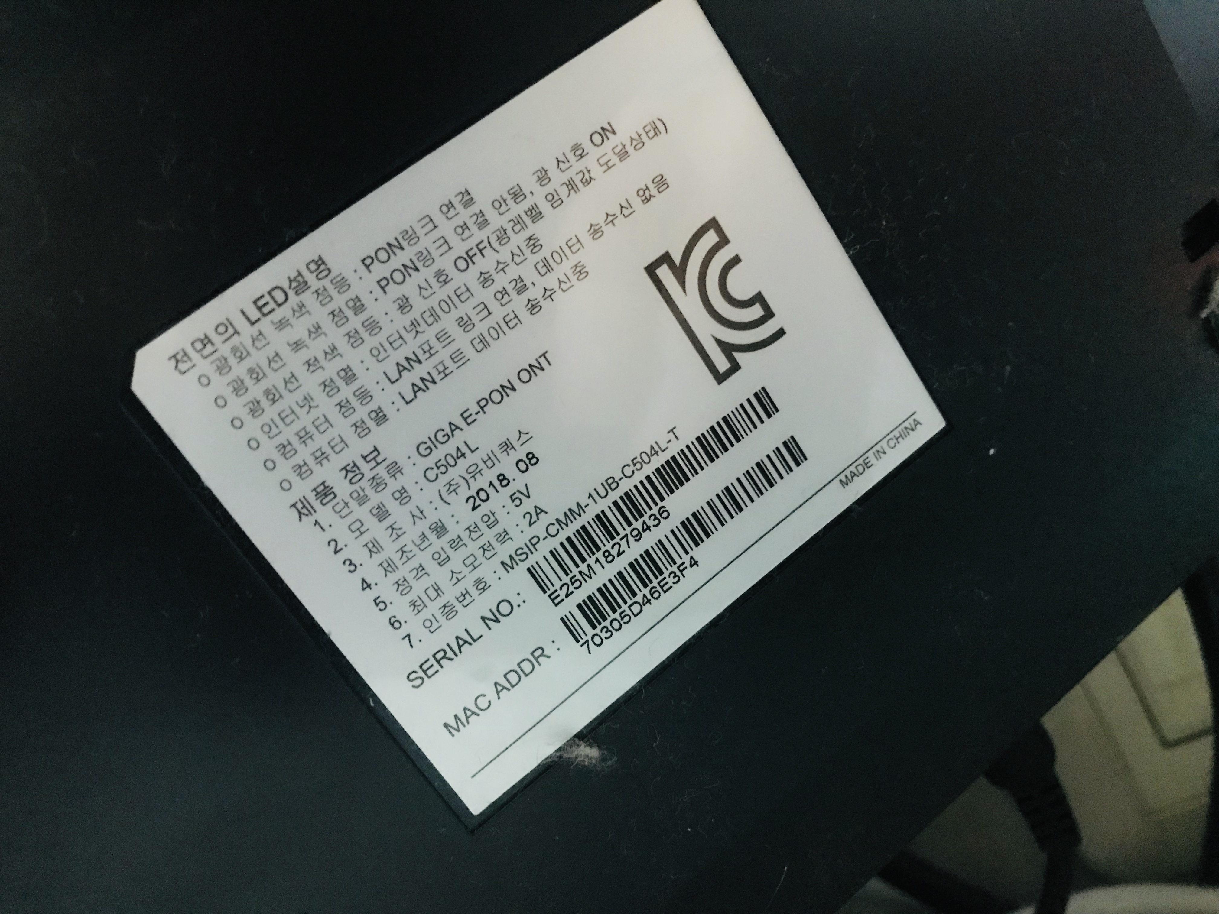 기기 하단을 보시면 해당 모뎀의 모델명이 기재되어 있을 거예요 +_+