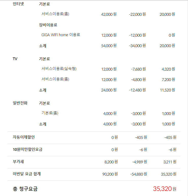 부모님의 핸드폰+인터넷 결합할인 덕분일 수도,