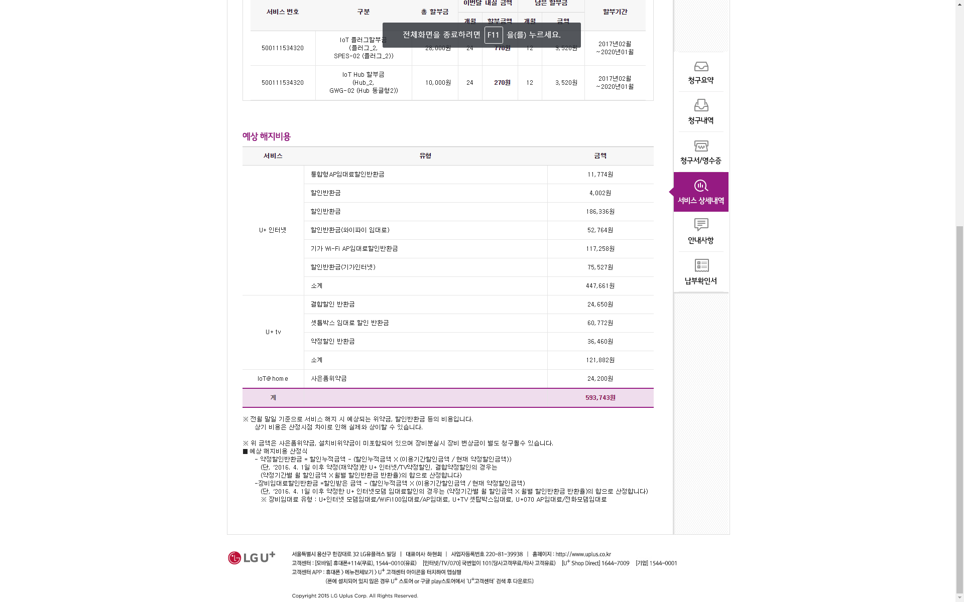 "해지하려는데 정확한 위약금을 확인해주세요~"