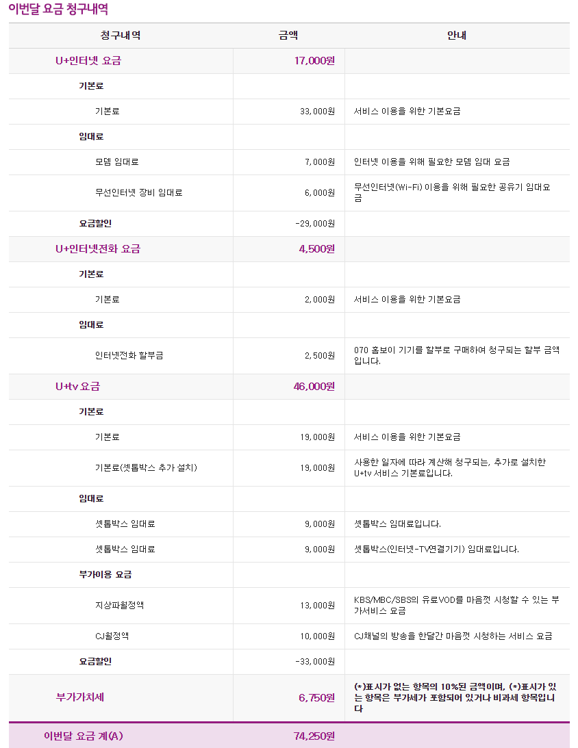 인터넷전화 할부금 2,750원은 제외되겠지만