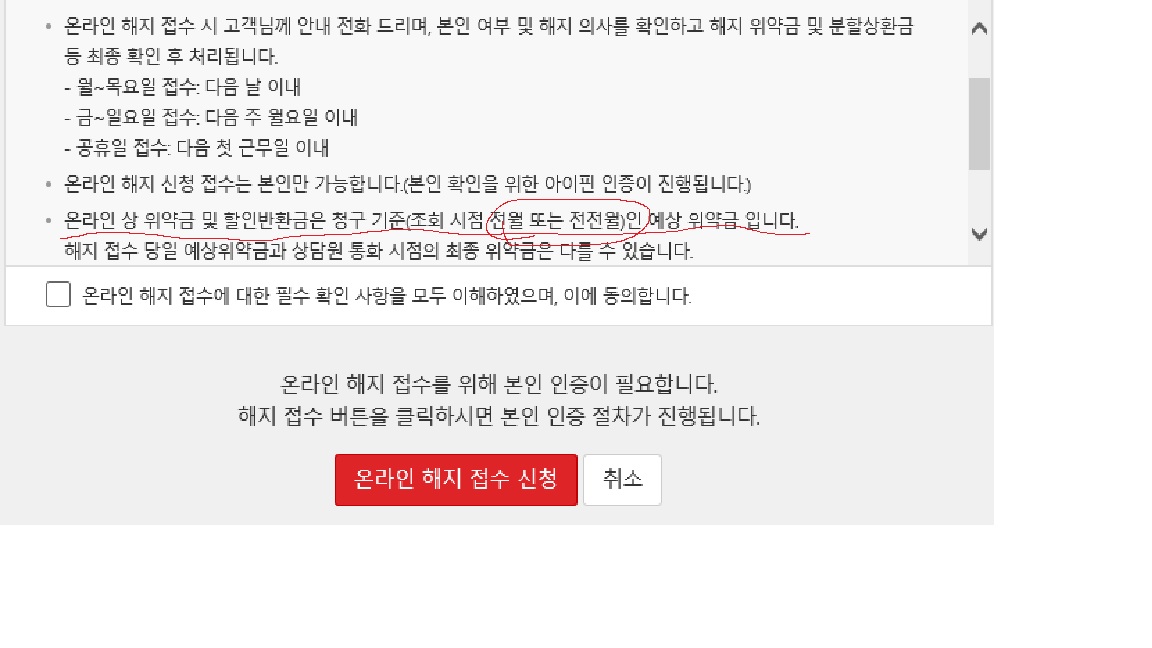 3사 통신사 중 KT만 해지위약금을 조회하면 전월 기준으로 위약금을 표기합니다;;