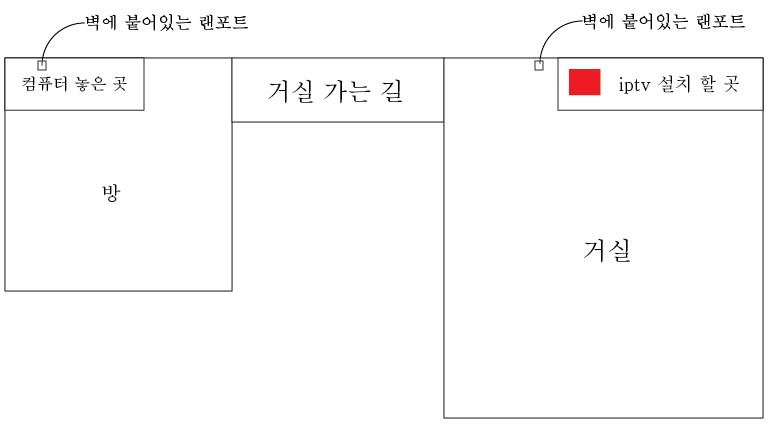 그래서 셋업박스와 모뎀은 위 그림의 빨간 네모에 설치할 예정이고 iptime 공유기를 따로 구매하여 와이파이용으로 쓰고싶습니다.