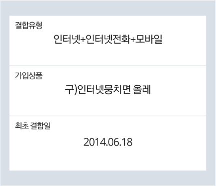 현재 부모님께서 인터넷뭉치면올레로 결합이 되어있으십니다.