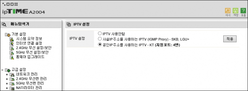 재구성 후에는 공유기 설정에서 IPTV 모드를 "ON" 시켜주어야