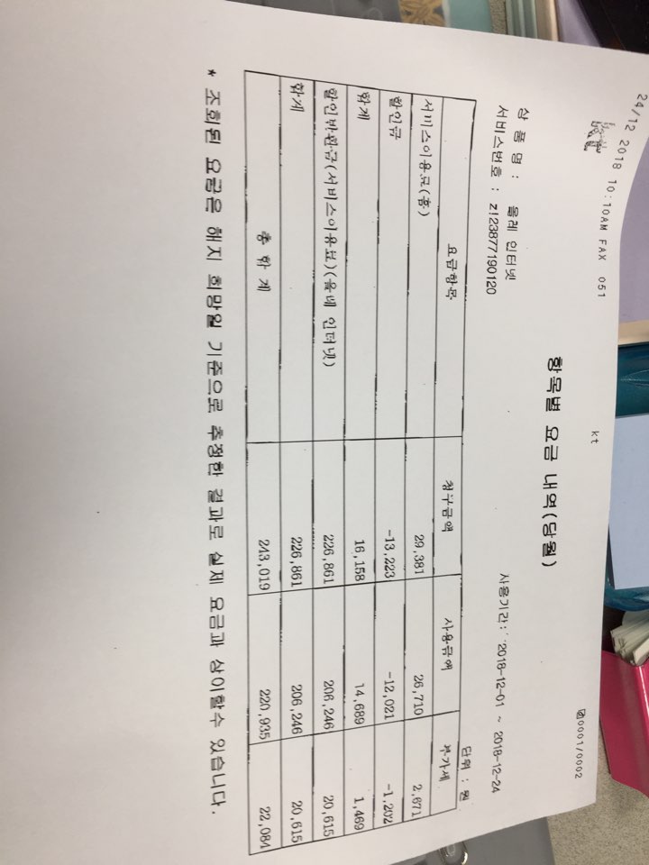 22,000원짜리 100메가 인터넷 요금제에서 13,000원 할인 됐다는 것도 이상하고