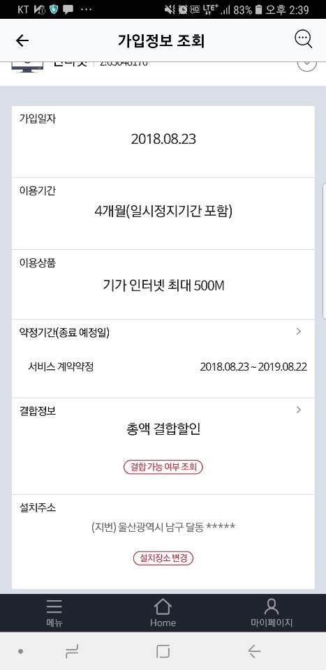 본가 KT인터넷 약정기간 만료일이 궁금합니다.